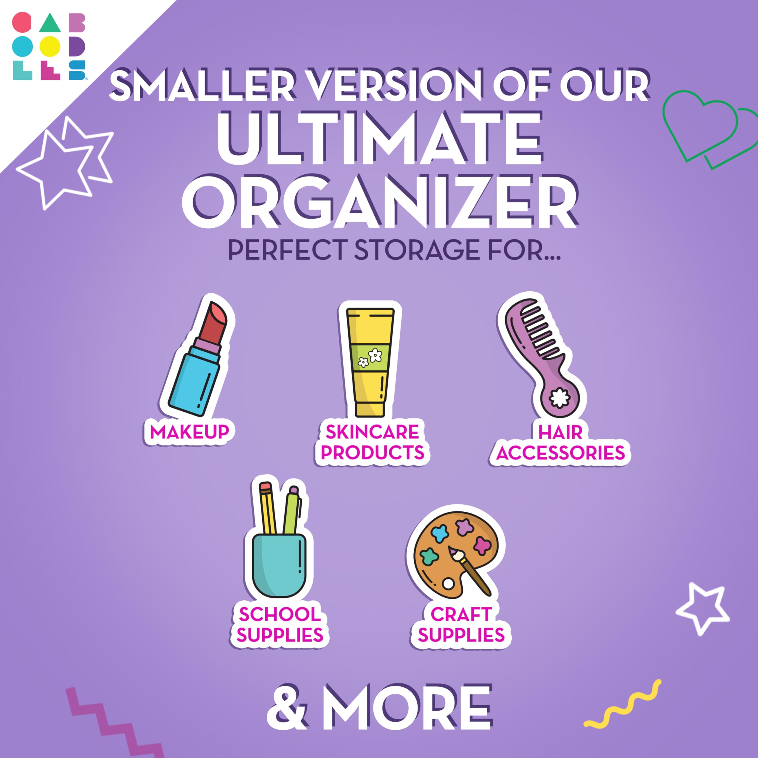 - FOR MORE THAN JUST COSMETICS: This Caboodles organizer is not just for cosmetics. It's the ultimate organizer for makeup, skincare products, hair accessories, school supplies, crafts or whatever you’re passionate about keeping sorted.